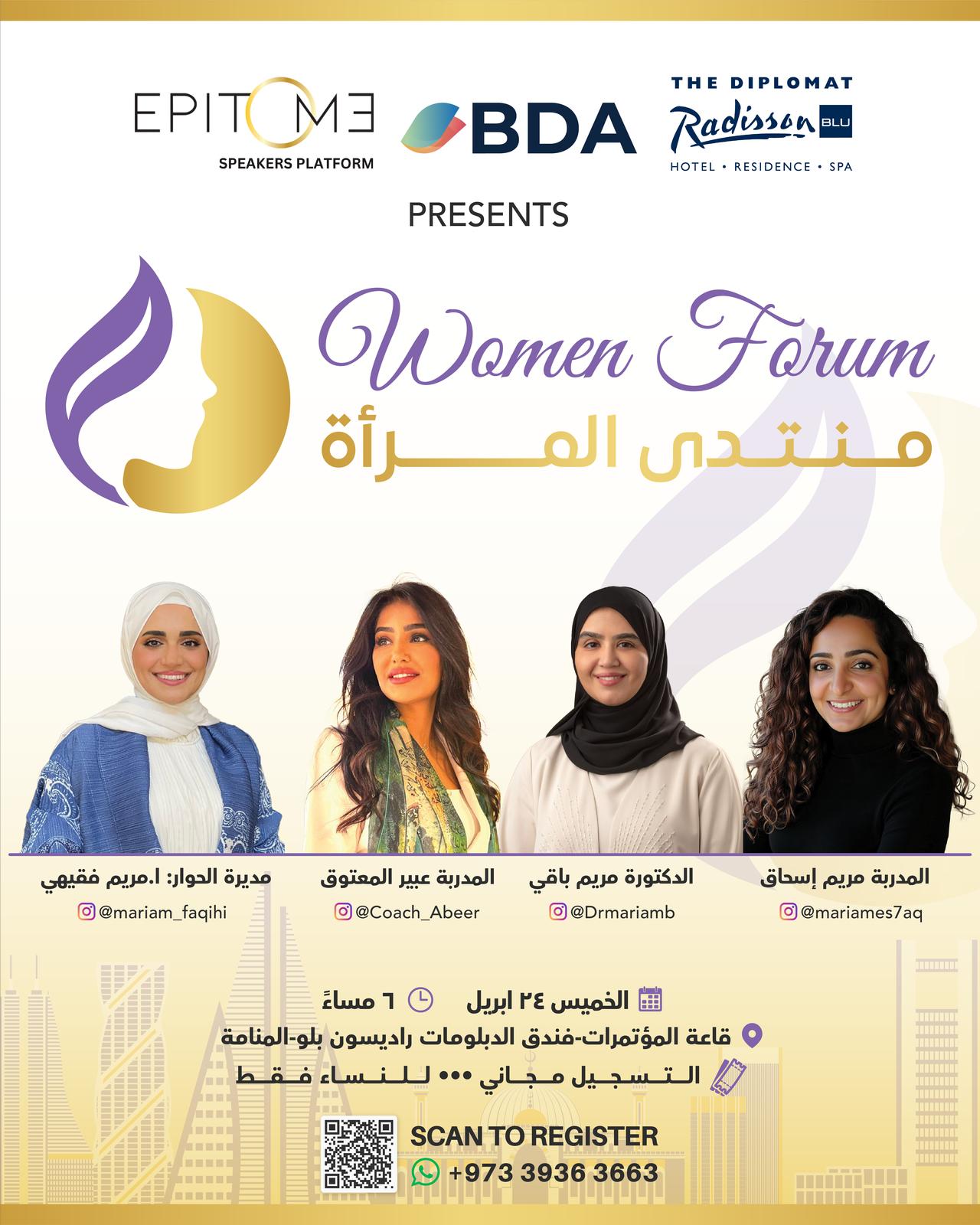 يستضيف مؤتمر ومعرض البحرين الدولي لصحة المرأة بنسخته الثانية، جلسة حوارية مجانية بعنوان “منتدى المرأة”، في قاعة المؤتمرات بفندق الدبلومات راديسون بلو في المنامة، وبحضور نخبة من المتحدثات الملهمات؛ حيث تنطلق فعاليات المؤتمر يوم الخميس 24 ابريل 2025 ، بتنظيم من شركة “بي دي ايه” لتنظيم المؤتمرات والمعارض الصحية والطبية.