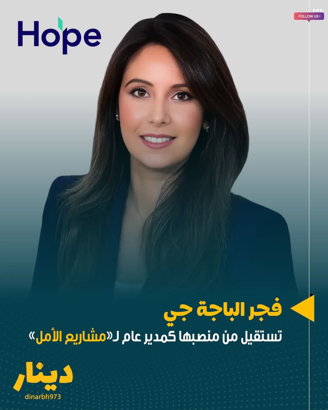 رصدت “منصة دينار” استقالة السيدة فجر الباجة جي من منصبها كمدير عام لشركة مشاريع الأمل القابضة، وذلك لأسباب شخصية، على أن تسري الاستقالة اعتبارًا من 7 أبريل 2025، وجاء ذلك في إفصاح الشركة بموقع بورصة البحرين اليوم الأحد.