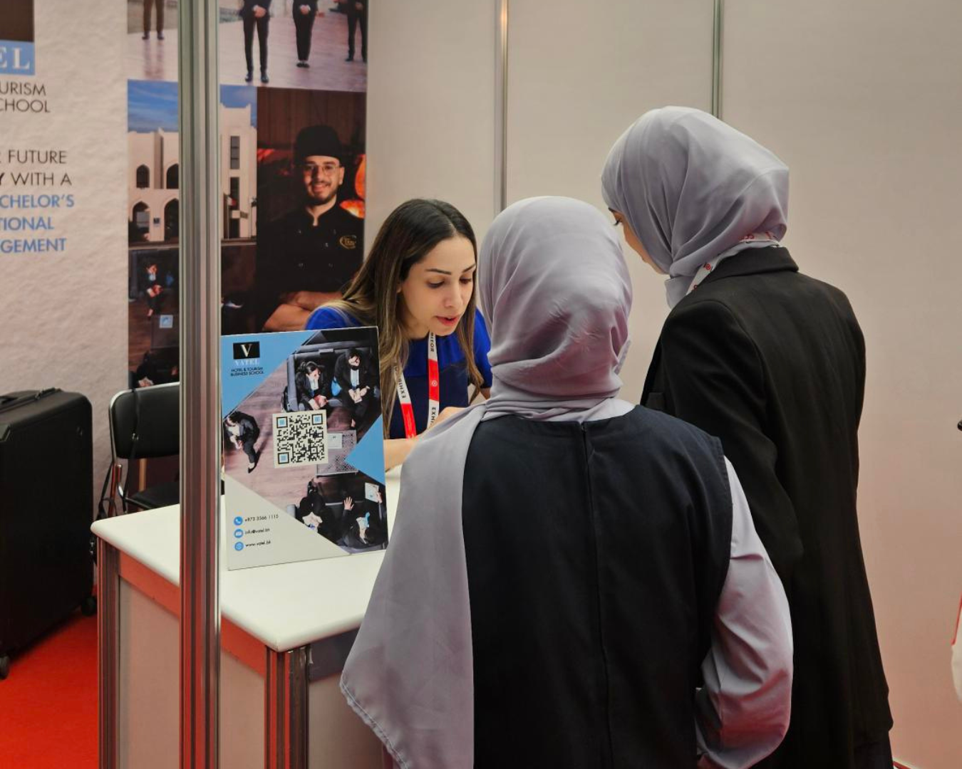 وخلال المعرض، التقى الطلبة بفريق “فاتيل البحرين” لمناقشة اهتماماتهم وطموحاتهم العلمية في مجالات الضيافة والسياحة وإدارة الفنادق، وتعرفوا على برنامج البكالوريوس في إدارة الفنادق الدولية الذي تقدمه الكلية، والذي يعد برنامجاً أكاديمياً احترافياً يجمع بين التعليم النظري والتطبيق العملي، كما يتيح لهم فرصة التدرب في الفنادق الدولية من فئة 4 نجوم وفئة 5 نجوم بما يكسبهم خبرة تقارب السنتين خلال دراستهم.
