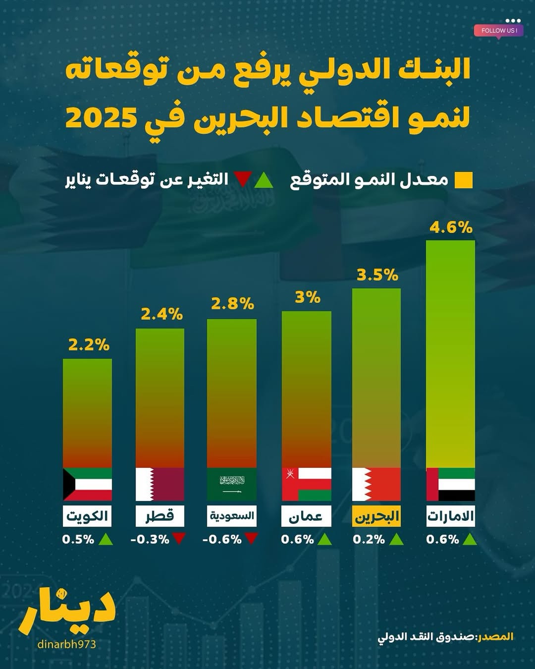 أشار صندوق النقد الدولي في تقريره الأخير إلى أن الاقتصاد البحريني يتوقع أن يواصل نموه بوتيرة معتدلة خلال عام 2025، مدعومًا بالإصلاحات المالية والتدابير الحكومية الموجهة، ولفت التقرير إلى أن هذه الخطوات ساهمت في تقليص العجز وتعزيز الاستقرار المالي رغم التحديات العالمية.