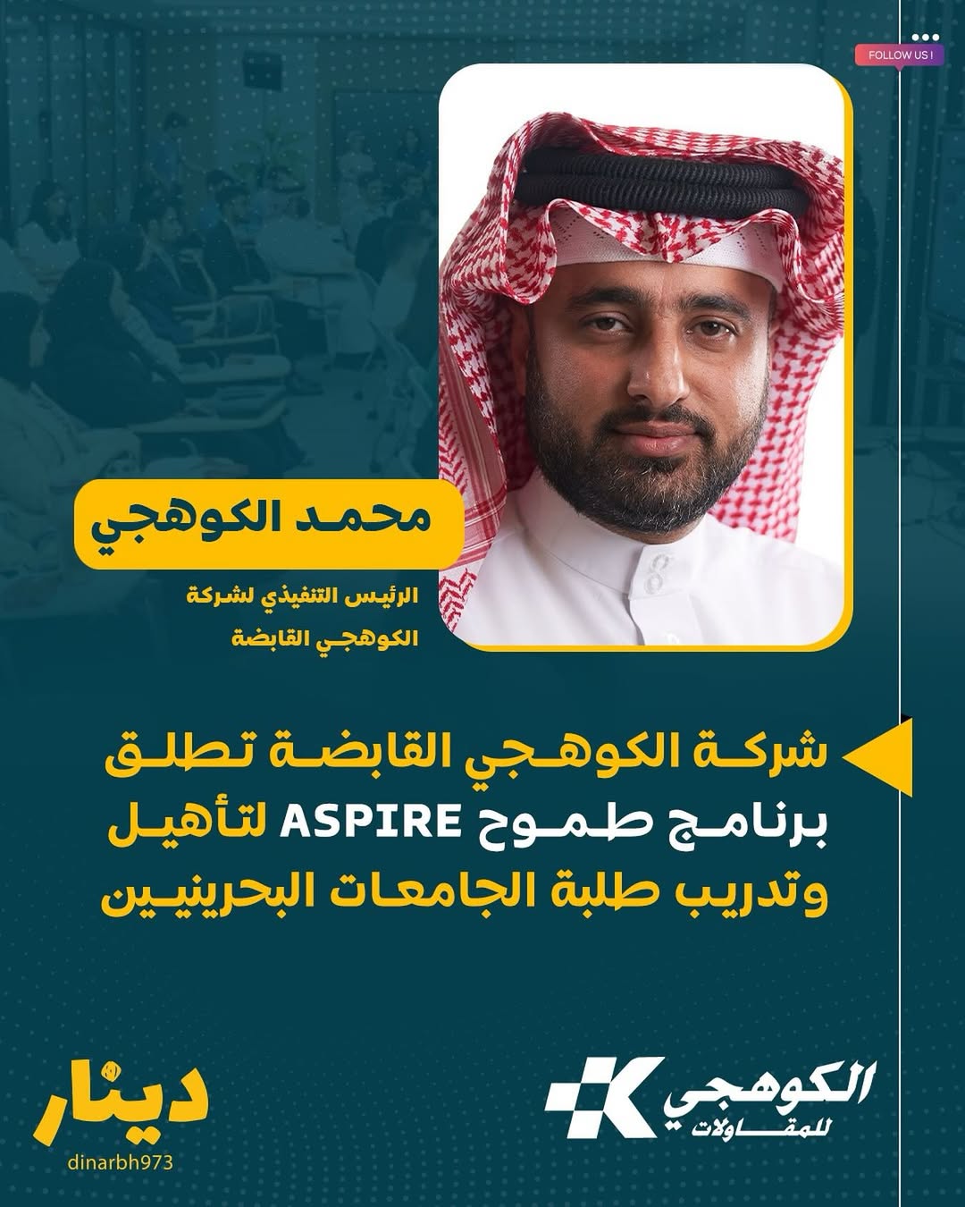أعلنت شركة الكوهجي القابضة عن إطلاق مبادرتها التدريبية الجديدة “طموح ASPIRE”، والتي تهدف إلى استقطاب طلاب الجامعات البحرينيين من مختلف التخصصات الأكاديمية، وتأهيلهم مهنياً من خلال برامج تدريب عملية في قطاعات متنوعة داخل كافة شركات مجموعة الكوهجي، بما يعزز جاهزيتهم لسوق العمل ويصقل مهاراتهم الفنية والمهنية.