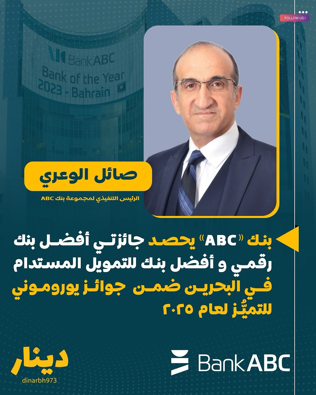 بنك ABC يحصد جائزتي أفضل بنك رقمي وأفضل بنك للتمويل المستدام في البحرين