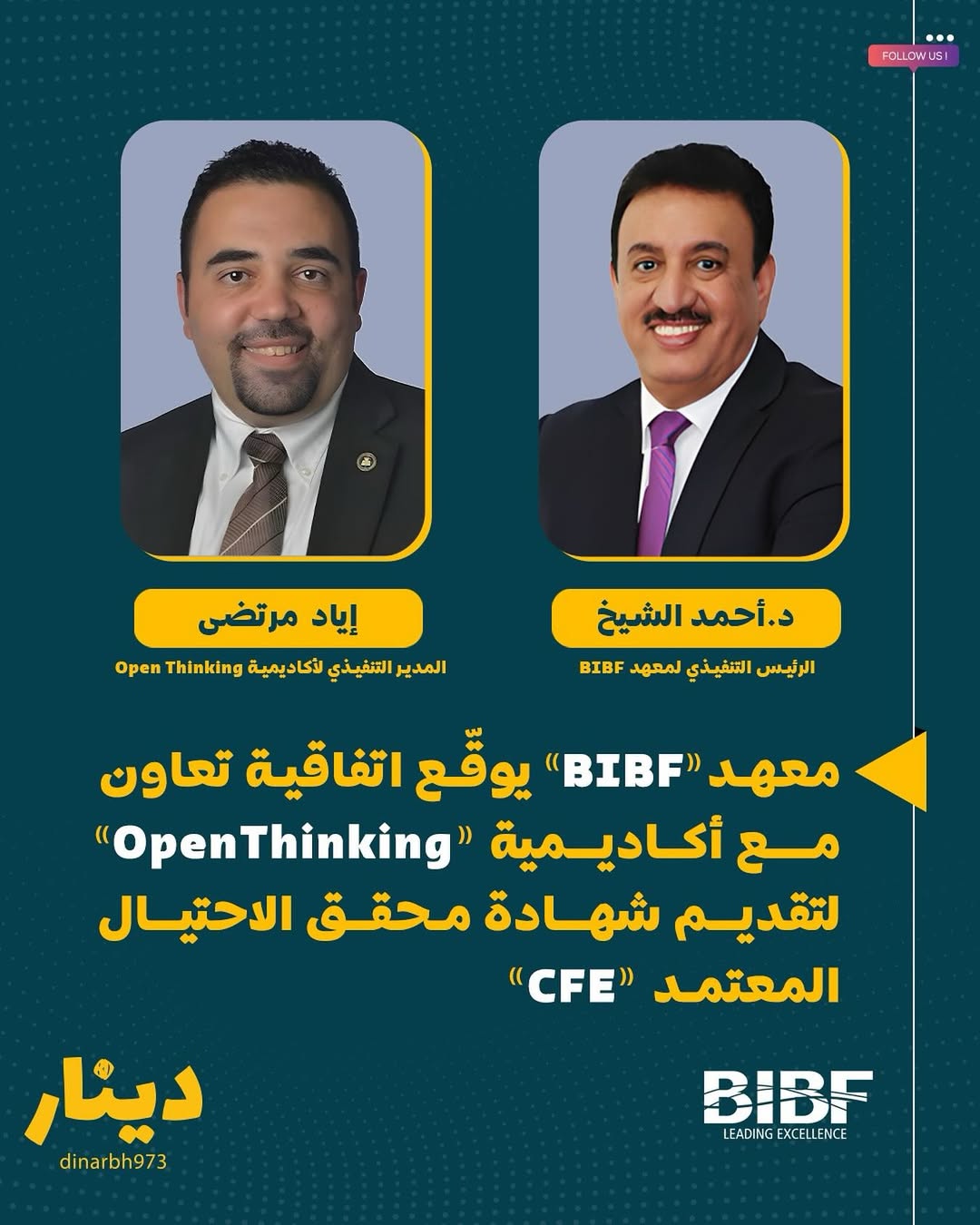 أعلن معهد البحرين للدراسات المصرفية والمالية (BIBF) عن توقيع اتفاقية شراكة استراتيجية مع أكاديمية “OpenThinking”، المزوّد المعتمد من قبل جمعية محققي الاحتيال المعتمدين الدولية (ACFE)، لتقديم برنامج محقق الاحتيال المعتمد (CFE) في مملكة البحرين.