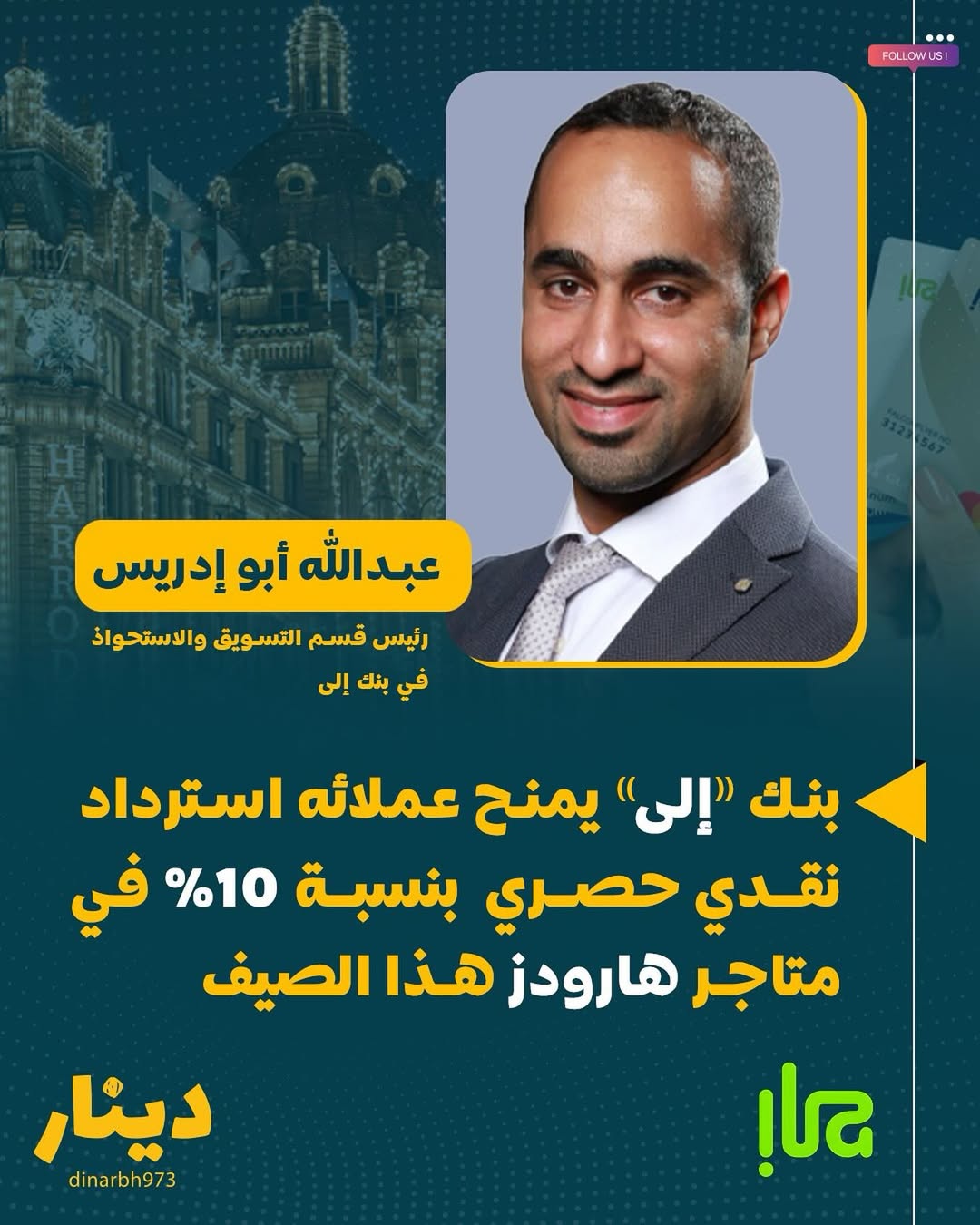 أطلق بنك “إلى” حملة صيفية مخصصة حسب احتياجات العملاء توفر لحاملي البطاقات الائتمانية الاستفادة من استرداد نقدي في متاجر هارودز ا الشهيرة. سيحصل حاملو بطاقات “إلى” الائتمانية على استرداد نقدي بنسبة 10% على كافة المشتريات التي تتم إجراؤها في متاجر هارودز حتى تاريخ 31 أغسطس 2025. تعكس هذه الحملة المصممة بعناية بما يتماشى مع احتياجات العملاء وتطلعاتهم، التزام بنك “إلى” بإعادة تعريف تجارب العملاء من خلال عيش نمط حياة مثالي وتمكينهم من تحقيق تطلعاتهم المالية.