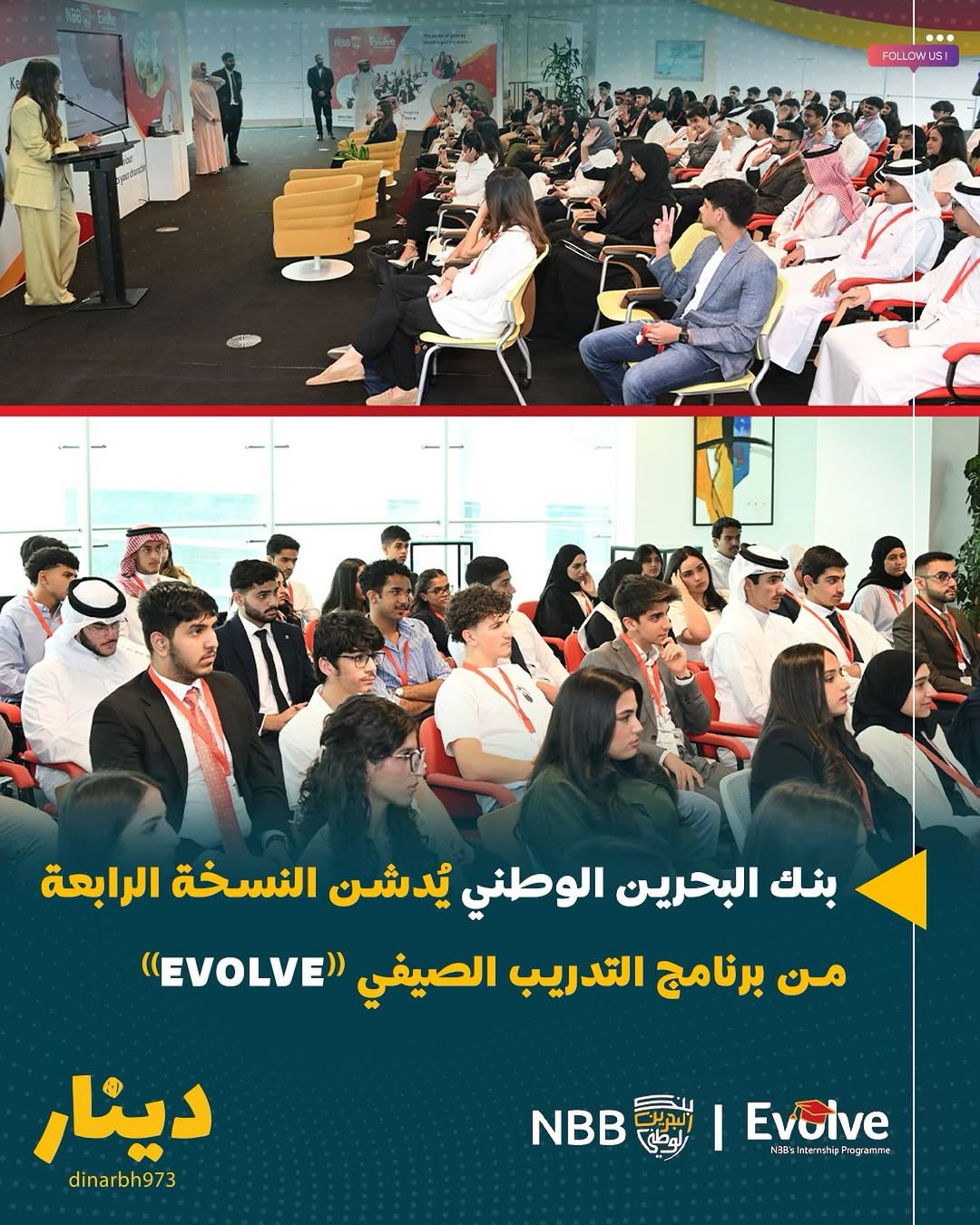 أعلن بنك البحرين الوطني (NBB) عن انطلاق النسخة الرابعة من برنامج التدريب الصيفي “EVOLVE” الذي يعمل على تزويد طلبة المرحلتين الثانوية والجامعية بخبرة عملية وميدانية، تُمكّنهم من تأسيس مهارات مهنية أساسية تؤهلهم للانخراط في قطاع الخدمات المصرفية والمالية.