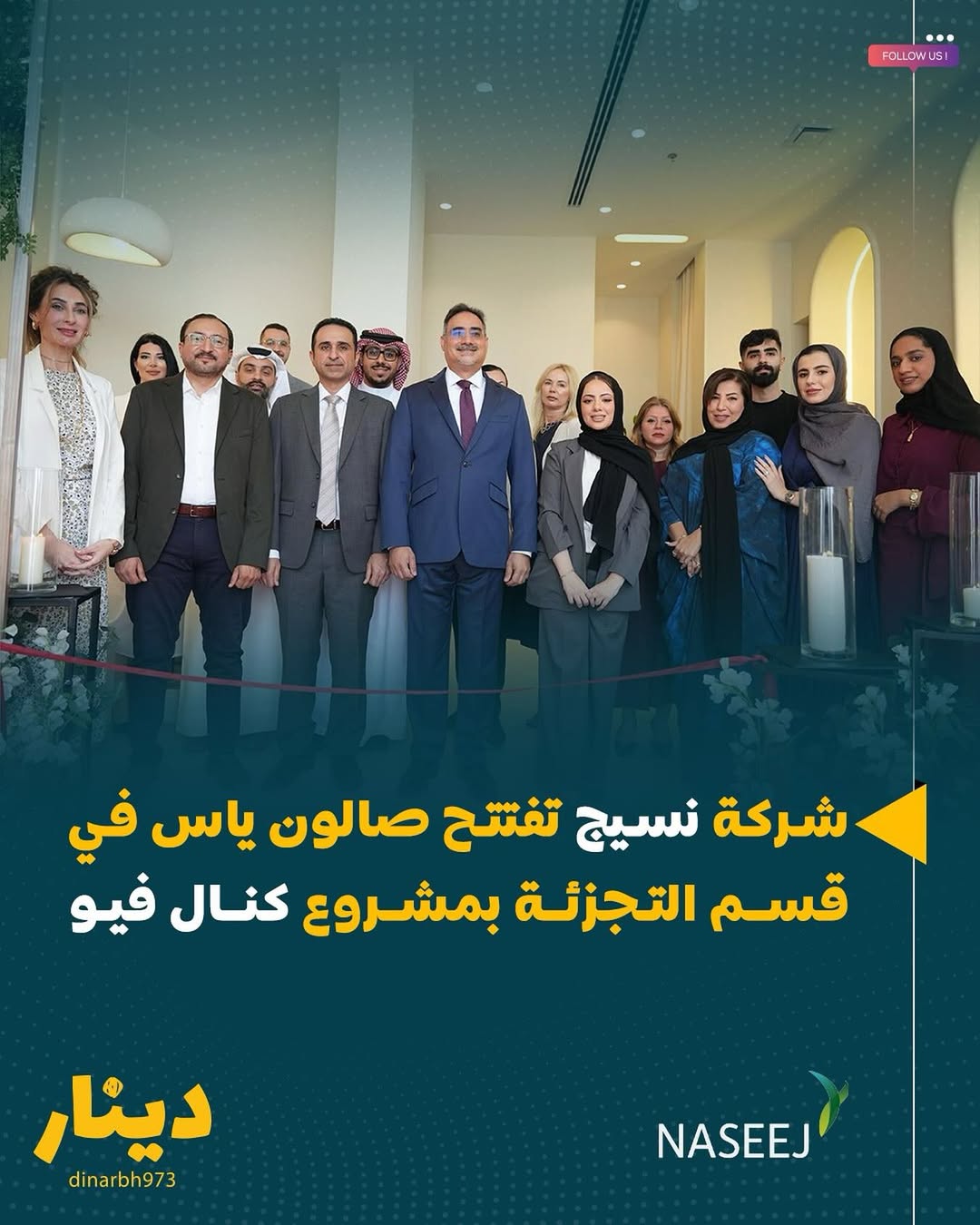 افتتحت رسميا شركة نسيج، رائدة التطوير العقاري في مملكة البحرين، صالون “ياس” في قسم التجزئة بمشروع كنال فيو في جزيرة دلمونيا بمحافظة المحرق، بحضور السيد أمين العريض الرئيس التنفيذي لشركة نسيج وممثلي عدد من مدراء الشركة والصالون.