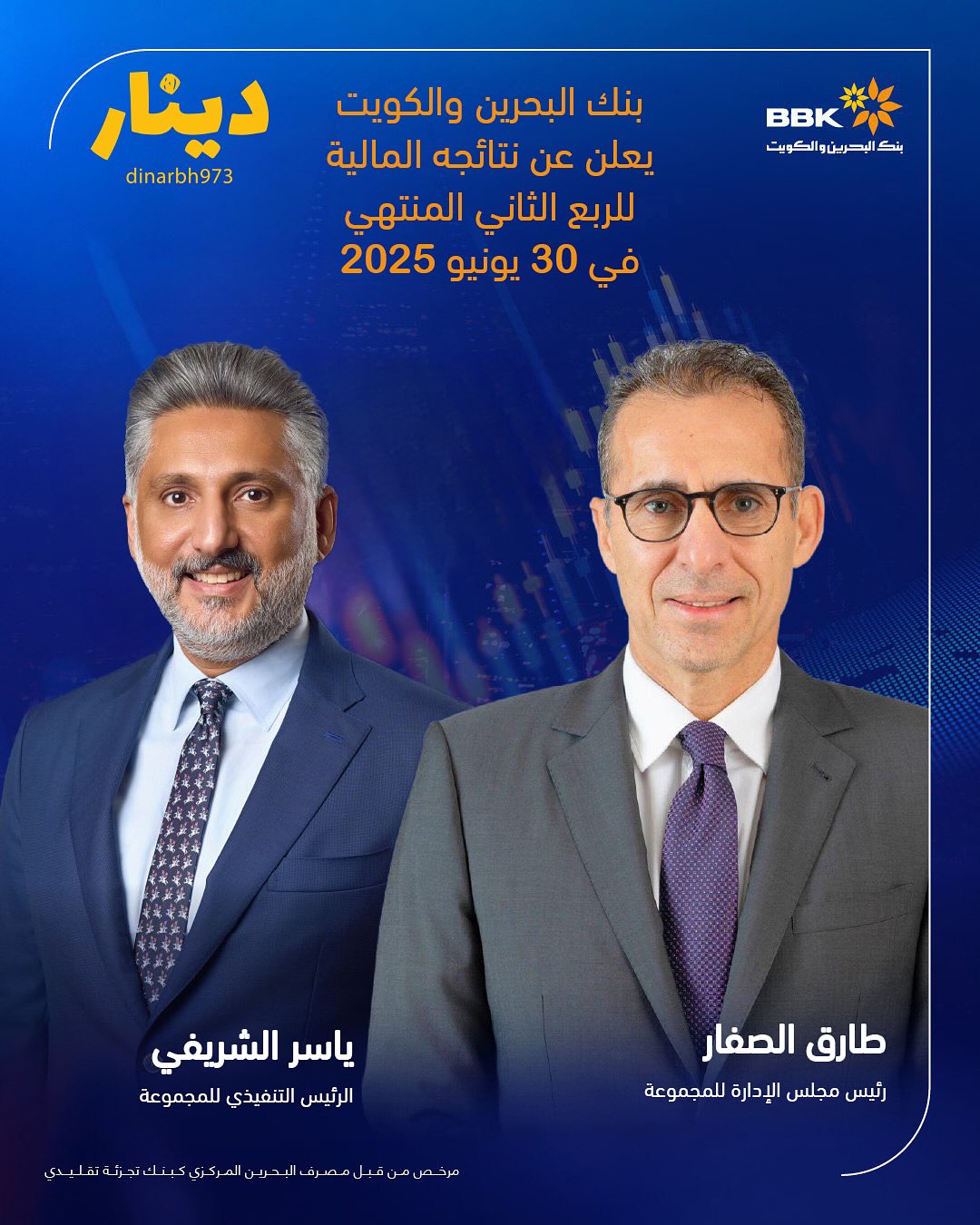 أعلن بنك البحرين والكويت رمز التداول(BBK) عن نتائجه المالية للنصف الأول المنتهي في 30 يونيو 2025، بما في ذلك نتائج الربع الثاني من عام