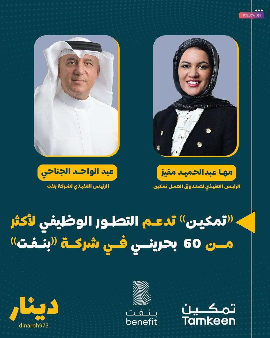 ومن جانبه قال عبد الواحد الجناحي الرئيس التنفيذي لشركة بنفت :»نعمل انطلاقًا من إيمان راسخ بأن الكفاءات البحرينية تملك المقومات التي تؤهلها للقيادة والتميّز، ولذلك نلتزم بصقل مهاراتهم وتوفير بيئة داعمة لمسيرتهم المهنية، بما يشمل الترقيات العادلة وزيادات الأجور المستحقة. ويتماشى دعم صندوق العمل «تمكين» مع رؤية الشركة، والتي سنواصل من خلالها الاستثمار في الكفاءات البحرينية بما يسهم في بناء كوادر مؤهلة وقادرة على المساهمة الفاعلة في تحقيق أهداف الشركة واستمرار نجاحها».
