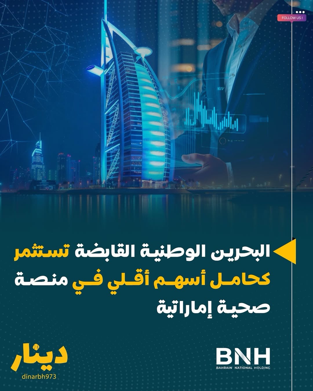 البحرين الوطنية القابضة تستثمر كحامل أسهم أقلي في منصة صحية إماراتية