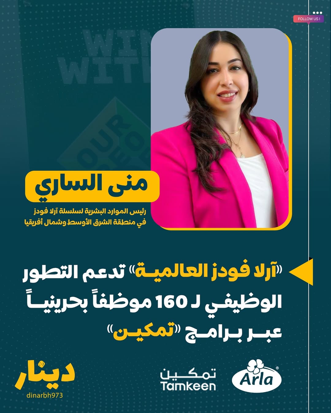 من جانبها أكدت السيدة منى الساري رئيس الموارد البشرية لسلسلة آرلا فودز في منطقة الشرق الأوسط وشمال أفريقيا قائلة: “”في آرلا فودز، نؤمن بأن الاستثمار في الكفاءات البحرينية هو استثمار في مستقبل البحرين. فالموظفون هم جوهر نجاحنا، ومن خلال التدريب والتطوير المستمر نسعى إلى تمكينهم من النمو والقيادة والمساهمة في رسم مستقبل قطاع التصنيع في المملكة.”