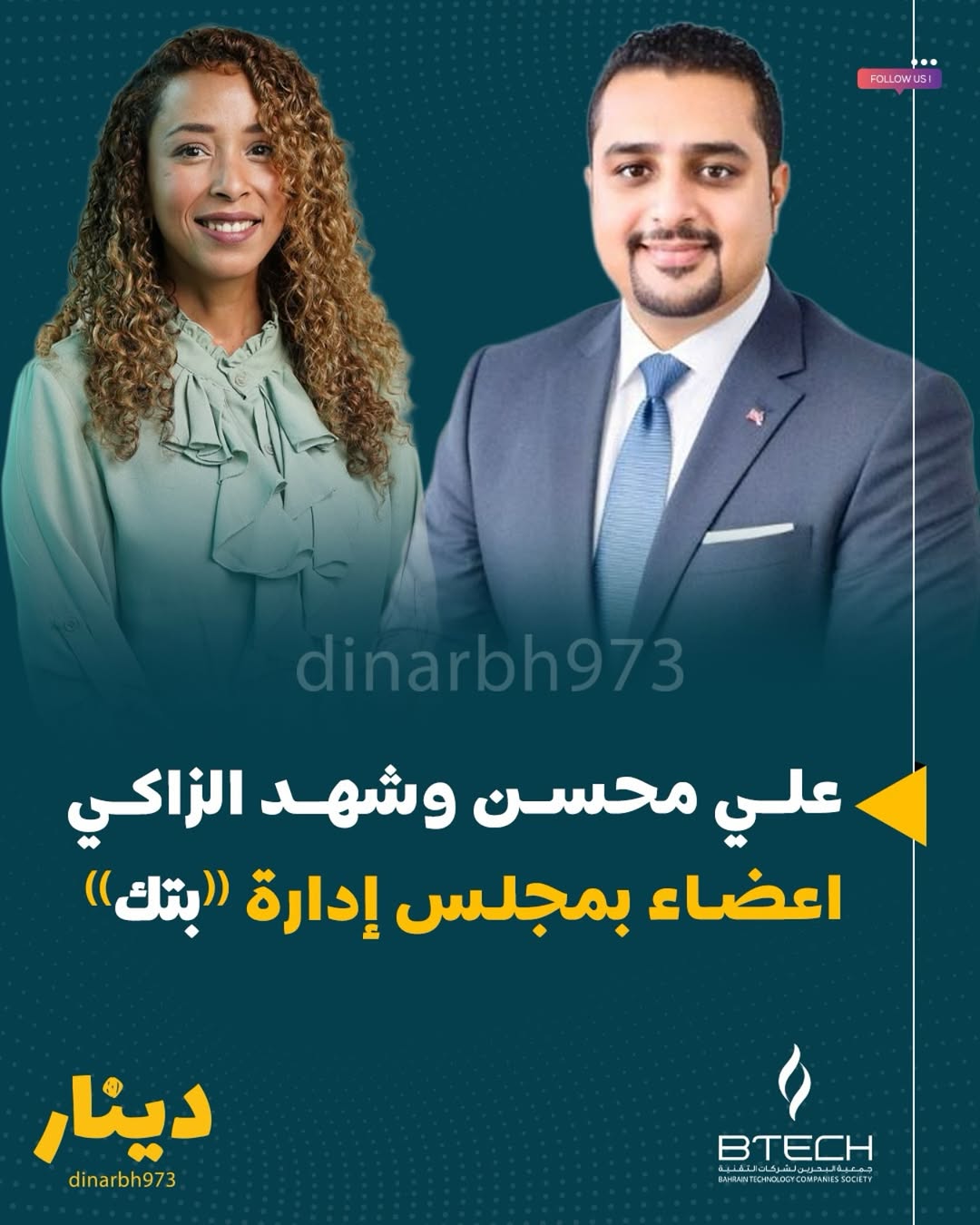 رصدت منصة دينار تعيين كلٍّ من السيد علي محسن وشهد الزاكي كأعضاء جدد في مجلس إدارة جمعية البحرين لشركات التقنية (بتك) ضمن تشكيلته الجديدة.