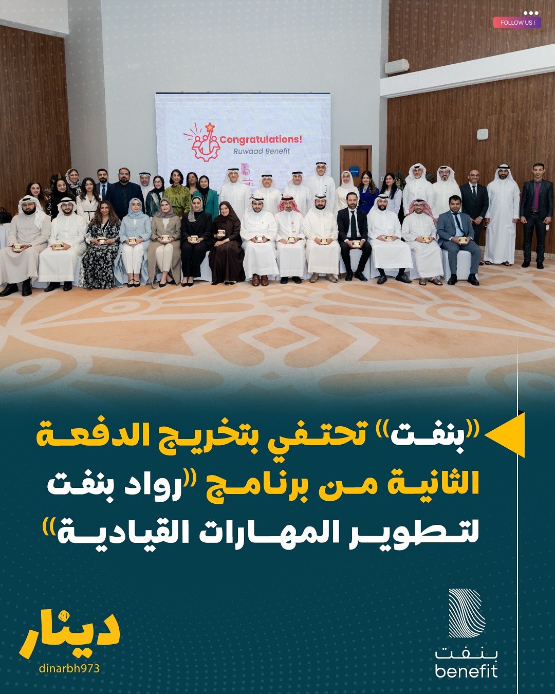 أعلنت “بنفت”، الشركة الرائدة في مجال التكنولوجيا المالية وخدمة المعاملات المالية الإلكترونية في مملكة البحرين، عن تخريج الدفعة الثانية من برنامجها التدريبي “رواد بنفت لتطوير المهارات القيادية”، وذلك خلال حفل خاص أقيم في فندق ويندهام غراند المنامة، بحضور الرئيس التنفيذي وأعضاء الإدارة التنفيذية بالشركة.