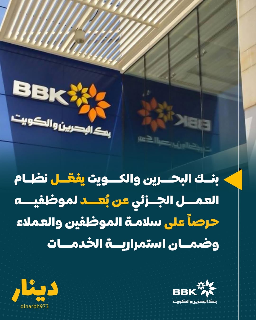 في إطار المتابعة المستمرة لمستجدات الأوضاع الإقليمية الحالية، وانسجامًا مع التزام البنك بالحفاظ على سلامة موظفيه وعملائه مع الاستمرار في تقديم خدماته بكفاءة عالية، أكد البنك بدء تطبيق نظام العمل الجزئي عن بُعد لموظفيه اعتبارًا من 1 مارس وحتى إشعارٍ آخر.